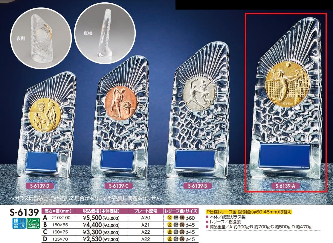 クリスタルS-6139-A【文字入れ・レリーフ選択無料】【メーカー希望価格30%OFF】